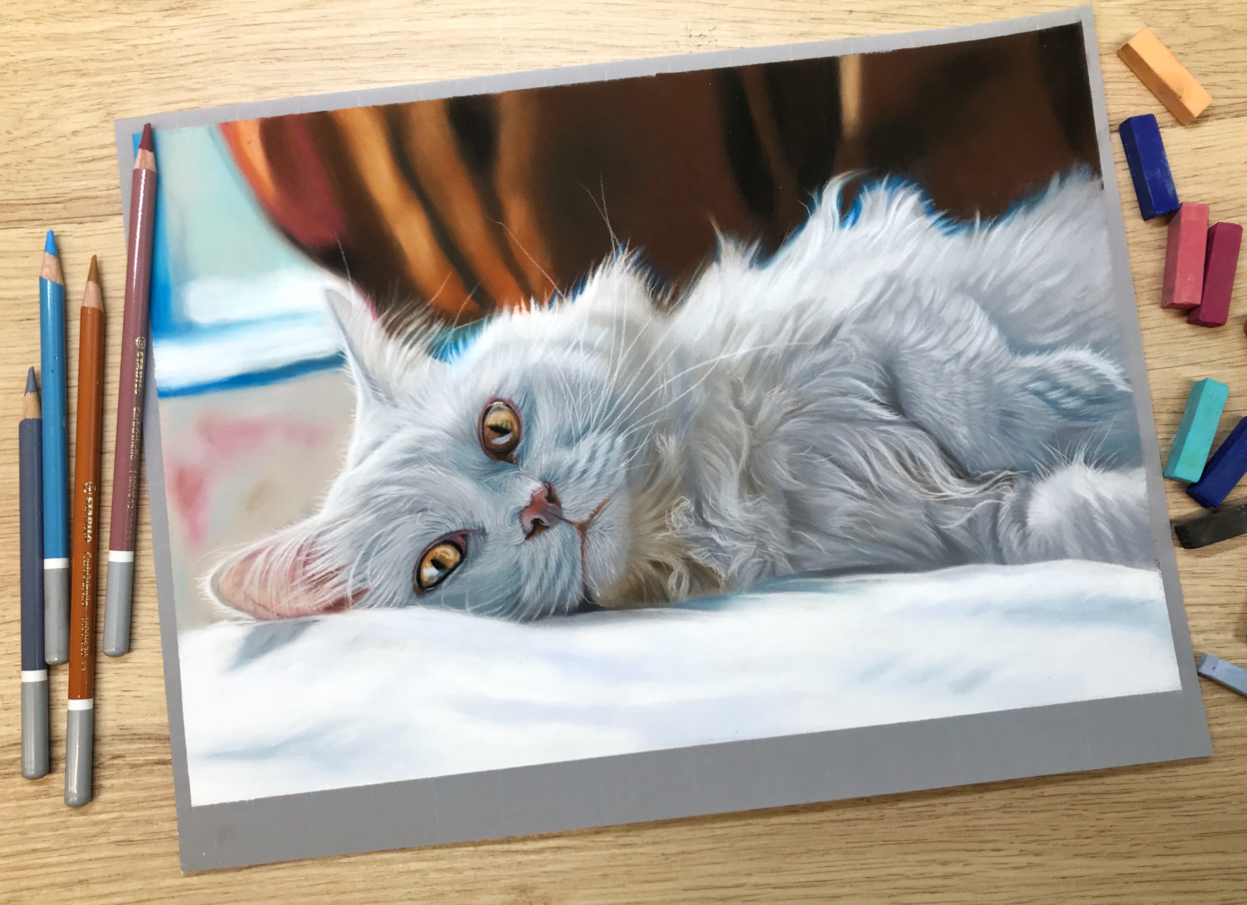 Uitbreiding online cursus katten tekenen in pastel: Witte kat