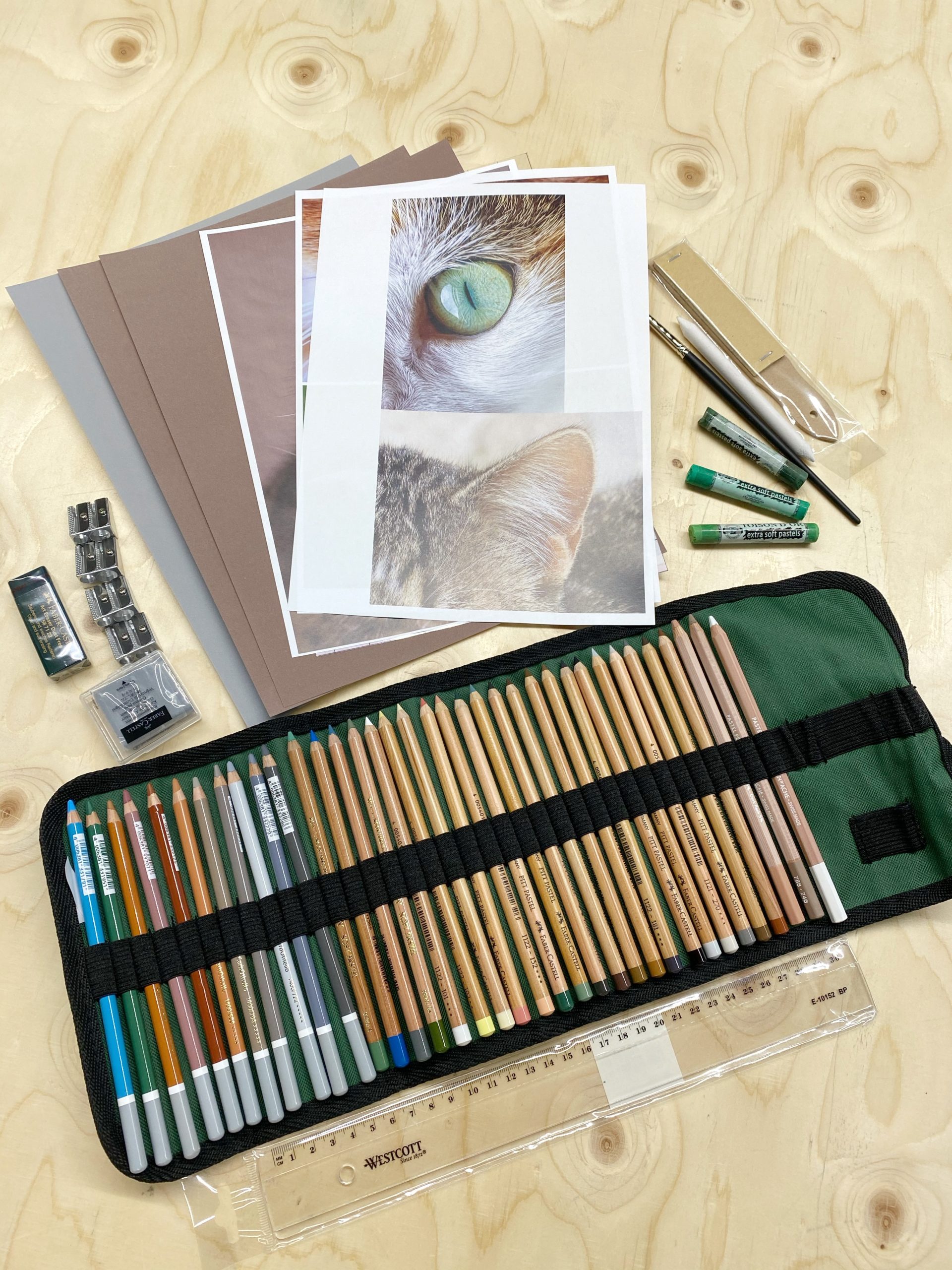 Materialenpakket voor de online kattencursus met pastel