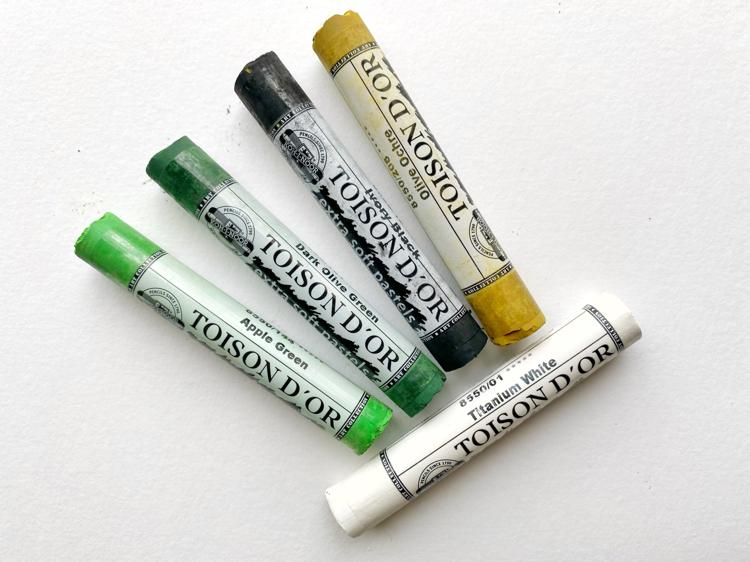 Voor de achtergrond: Pastelkrijt Koh I Noor Toison D’or: zwart, wit, 151 (was 24), 208 (was 39), 144