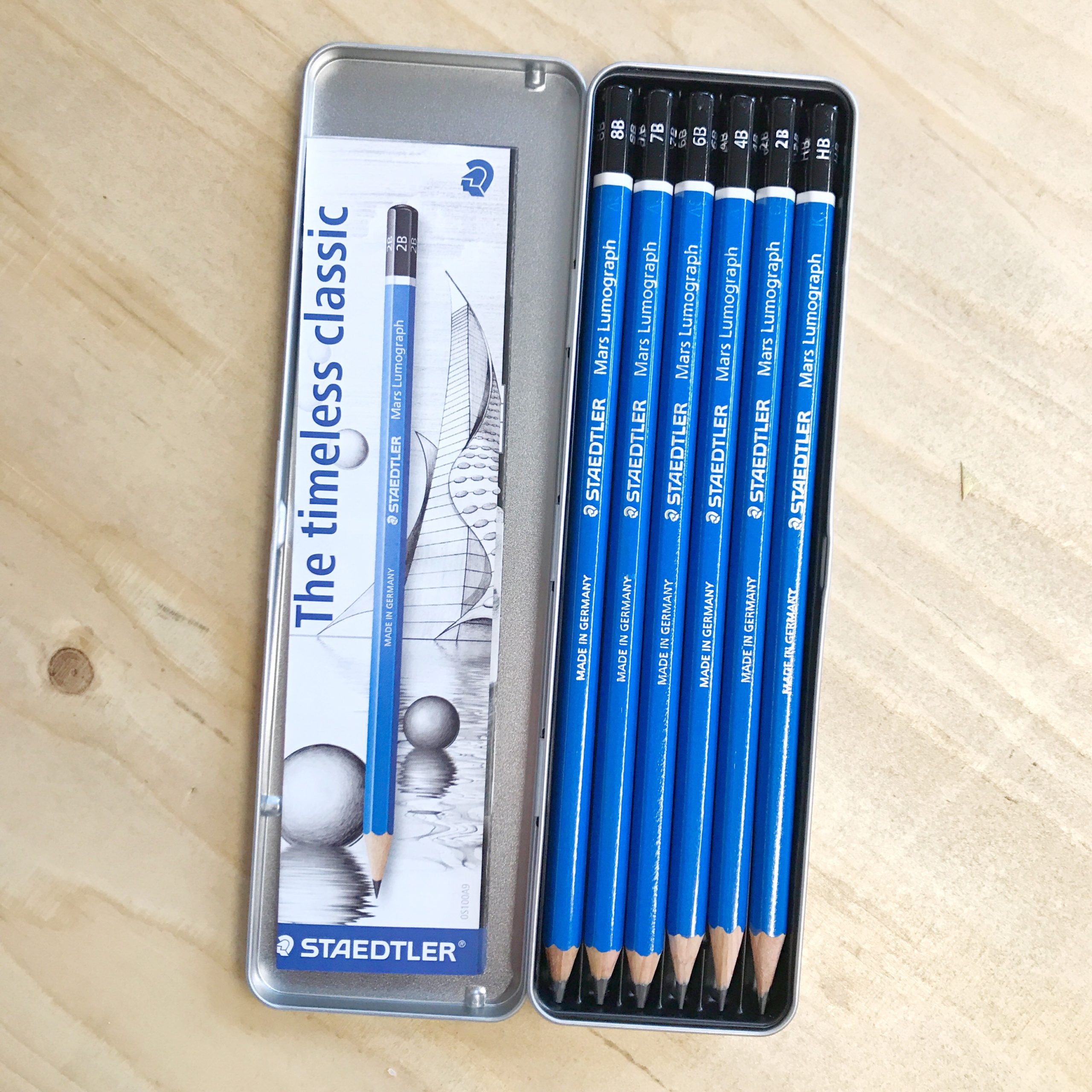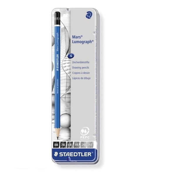 Staedtler Lumograph Mars zijn hele goede en professionele grafietpotloden! Het hout en de stift zijn sterk waardoor het potlood makkelijk te slijpen is. De verschillende hardheden geven mooie tinten lichtgrijs tot diep donkergrijs.
