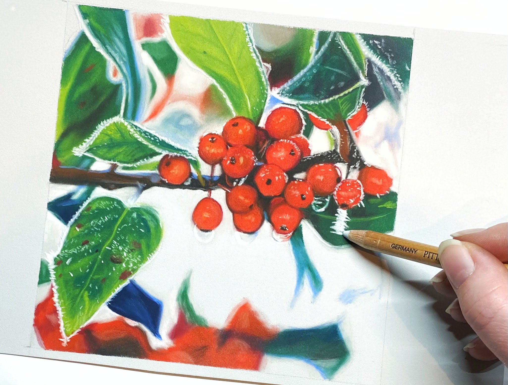 Je gaat een schets in de juiste verhoudingen opzetten met overtrekpapier of een raster en vervolgens laat ik je zien hoe ik deze winterse besjes inclusief mooie achtergrond teken met daarbij duidelijke uitleg. De video is niet versneld dus erg goed te volgen.