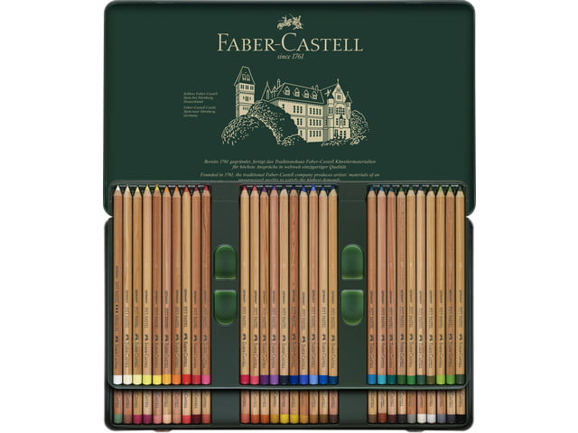 Faber Castell Pitt pastelpotloden zijn van alle merken de hardere pastelpotloden. Het voordeel hiervan is dat ze ideaal te gebruiken zijn voor details. Ze zijn mooi scherp te slijpen en ze hebben een hoog pigmentgehalte.
