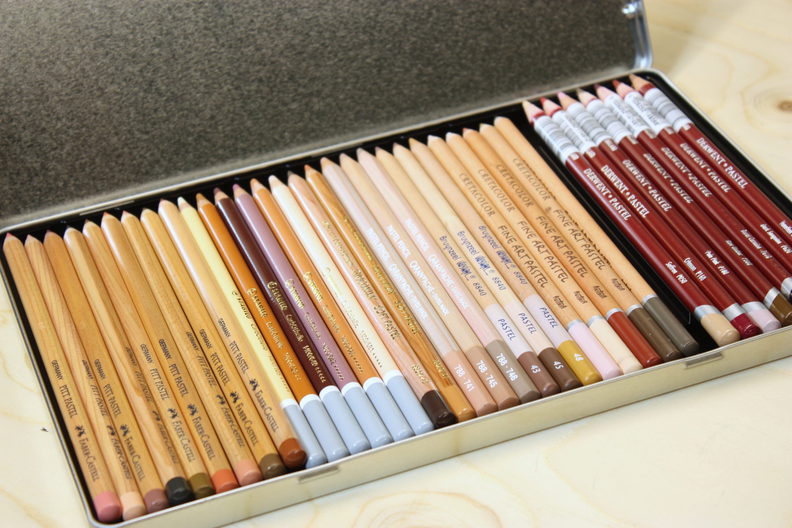 Deze mooie set met allerlei kleuren van verschillende merken is geschikt voor lichte huid tot donkere huid. De set is samengesteld naar aanleiding van de Online cursus: Mensenportret in pastel.